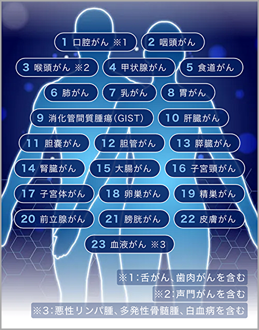 5大がん検診では見つけられない「膵臓がん」を始め、計23種類のがんに対応しています。